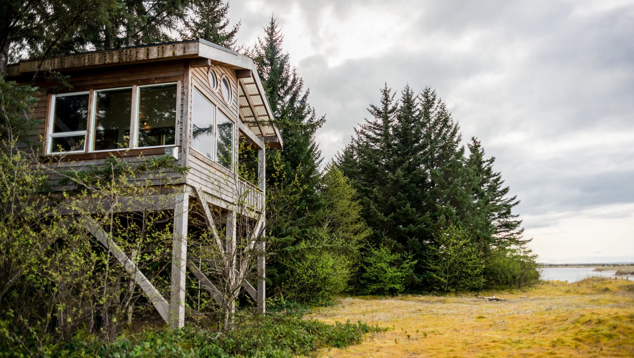 The spectacular sights of Highwater House begin on the edge of the wilderness where the Sangan River meets the Pacific Ocean and spans across endless dunes and beach, with breathtaking views of Alaska, Tow Hill and beyond. You can spend hours on the front porch overlooking the Sangan River and the ocean beyond or you can relax enveloped in the lush foliage of the forest surrounding the back deck.